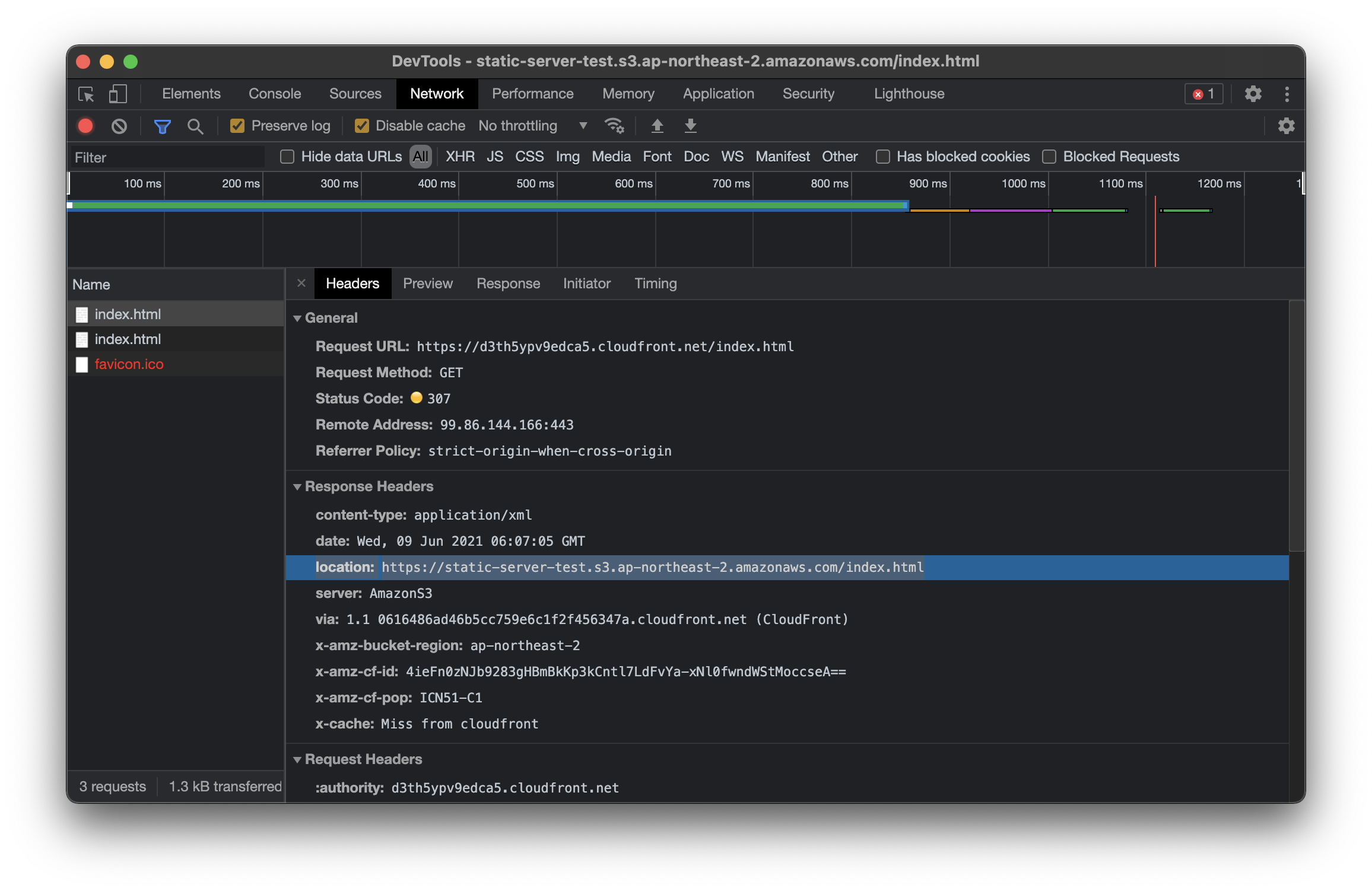 S3의 글로벌 리전으로 요청을 보내는 과정에서 글로벌 리전은 아직 모든 곳에 propagation을 못했기 때문에 default endpoint인 서울 리전(ap-northeast-2)으로 fallback을 보냅니다 이 때 307이 일어납니다