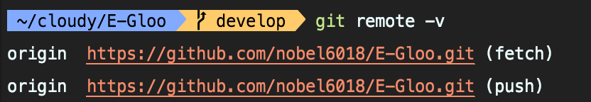 1. 현재 연결되어 있는 원격 저장소를 확인합니다